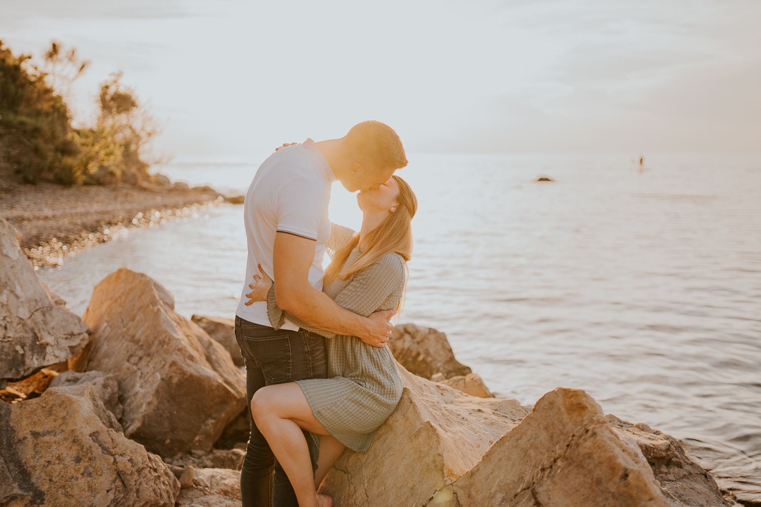 Zaročno fotografiranje ali predporočno fotografiranje je namenjeno spoznavanju para z najine strani in tudi spoznavanje naju s strani para. Pri najinem delu nama je zelo pomembno, da s parom “klikneva” že v samem začetku. Vsako leto pa se nama zgodi, da je en izmed parov takšen, kot bi ga poznala že celo življenje. Ana in Lovro sta bila takšen par. Preprosta, ampak nasmejana sta bila cel čas fotografiranja. Pri njima je bilo enostavno najti toliko podrobnosti, katere iščeva na vsakem fotografiranju.